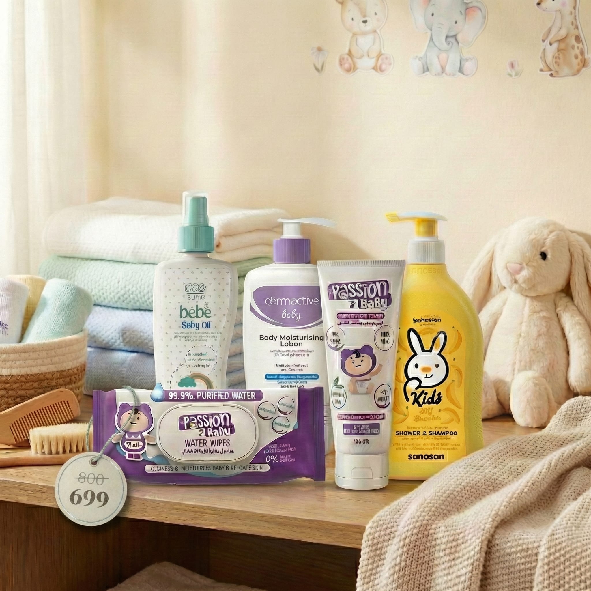 Baby skin is thinner, more sensitive, and needs extra care from the very first days. The Baby Body Care Kit brings together essential daily products to gently cleanse, nourish, protect, and soothe your baby’s skin, helping maintain softness, comfort, and healthy skin balance.