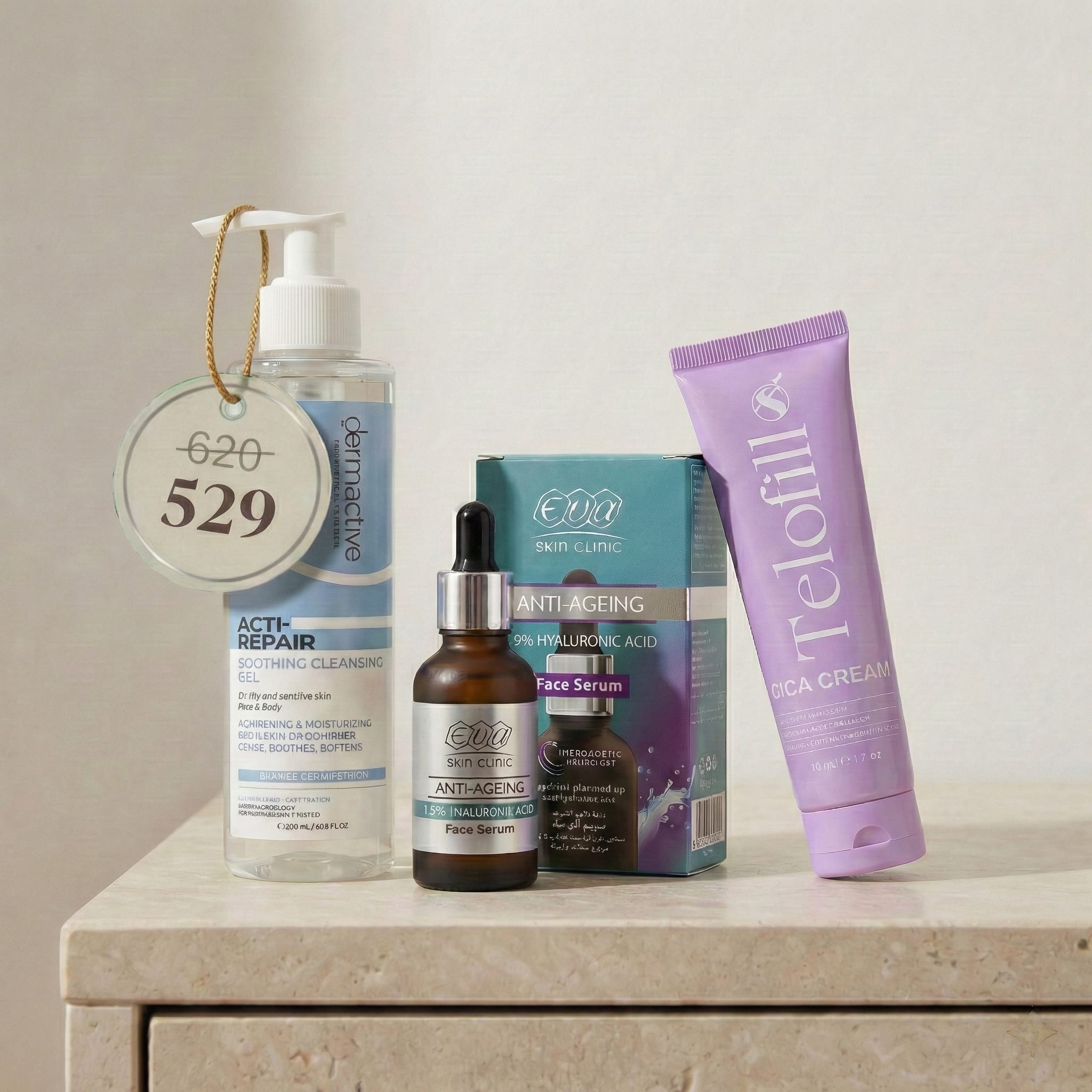 Start with the Dermactive Acti Repair Soothing Cleansing Gel. This mild cleanser removes impurities while calming and protecting sensitive skin. Enriched with Peelmoist™, ceramides, niacinamide, aloe, panthenol, and sodium hyaluronate, it leaves skin refreshed, hydrated, and comfortable.